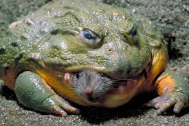 Se alimentan de pequeños vertebrados (serpientes, peces, pájaros, otras ranas, renacuajos, lombrices, insectos, crustáceos, incluso se ha dado el caso de ranas toro que comen murciélagos)