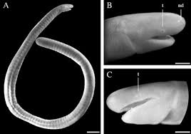 El tamaño de los cecílidos varía según la especie: desde 10 cm de la especie Idiocranium russeli hasta 1,5 m de la especie Caecilia thompsoni.