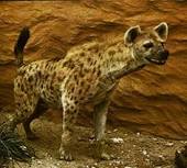 La hiena (Crocuta crocuta) en un mamífero perteneciente a la familia Hyaenidae. Tiene apariencia de lobo, pero sus cuartos traseros son más bajos. Tiene el tronco y el cuello relativamente cortos, sus extremidades posteriores son muy cortas y las anteriores largas, con uñas no retráctiles modificadas para correr y cavar. Su pelaje es escaso y grueso, poco desarrollado o inexistente en la zona ventral. Posee un color marrón y con motas negras.